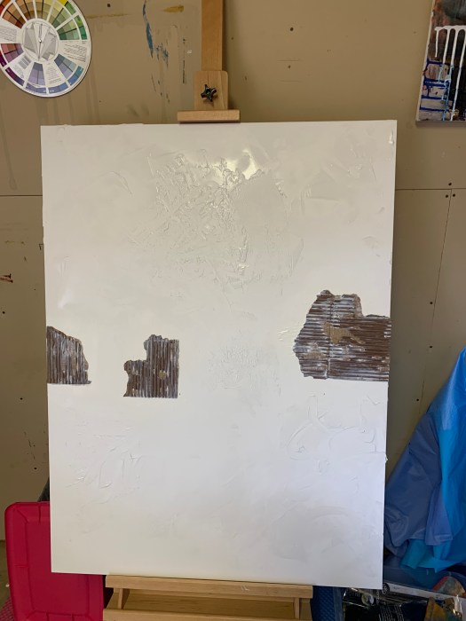 Life has been extraordinarily busy as of late. I have had little to no time to create. This certainly adds to my chronic level of anxiety. Today however I was able to re organization my studio with the help of my husband. I layer down some texture on a piece I want to do for us.